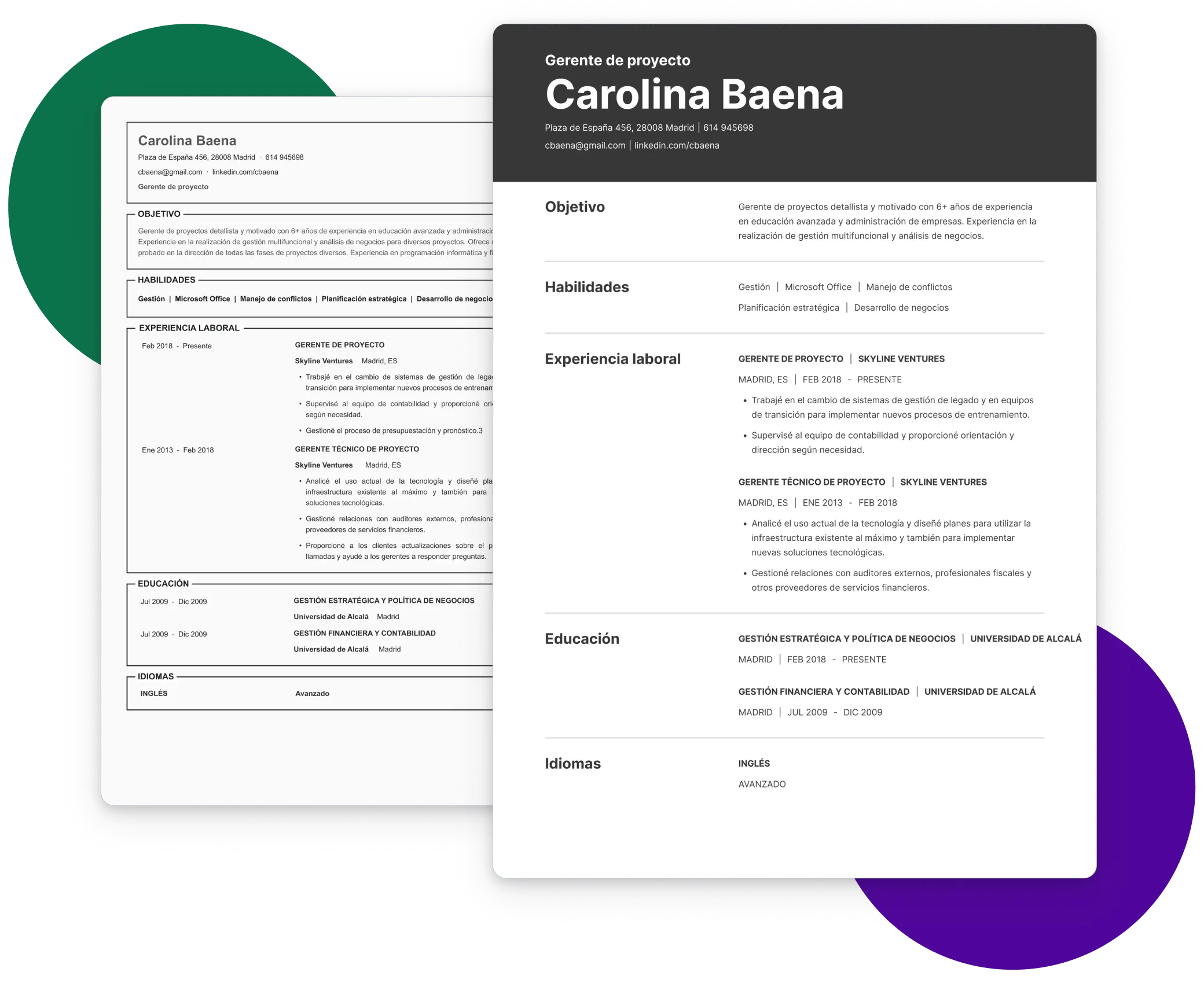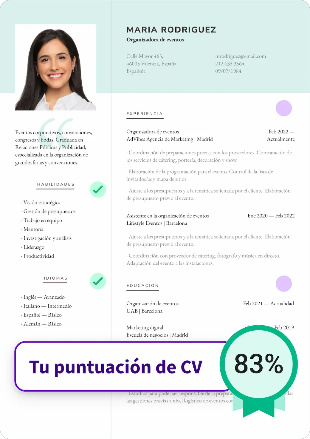 - Crea tu CV en unos simples pasos.